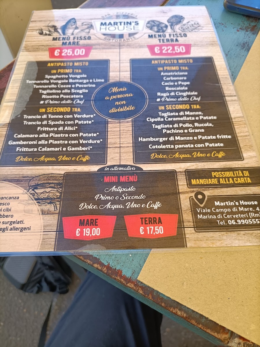 Welcome to Martin's House, a hidden gem nestled in the picturesque setting of Marina di Cerveteri, Italy. Situated at V.le Campo di Mare, this vibrant eatery captures the essence of Italian culinary tradition while embracing a modern flair. The warm atmosphere and inviting ambiance make it the perfect destination for food enthusiasts and families alike, as echoed by visitors like Ali Murtaza, who noted the delightful vibe even during a quick drop-off for a birthday party.
